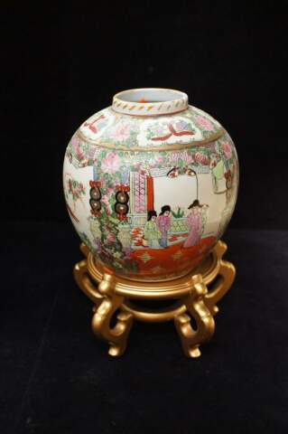 Vintage Round Asian Handcrafted Decorative Medallion Familia Rose Flower Vase