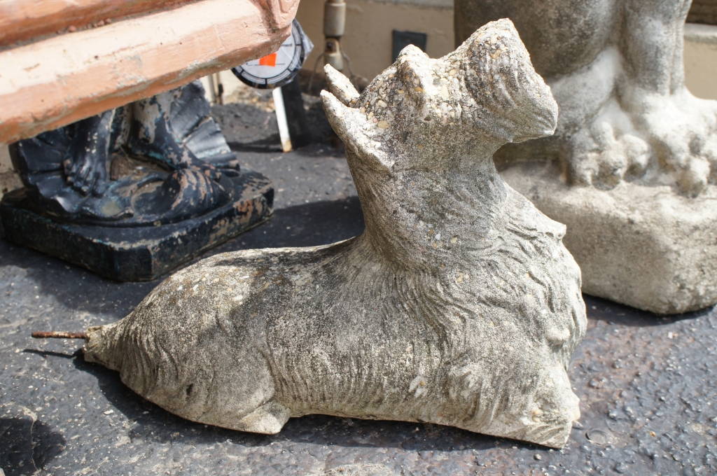 Antique Stone Garden Scotty Terriers Concrete Dogs Status Figurines Cement