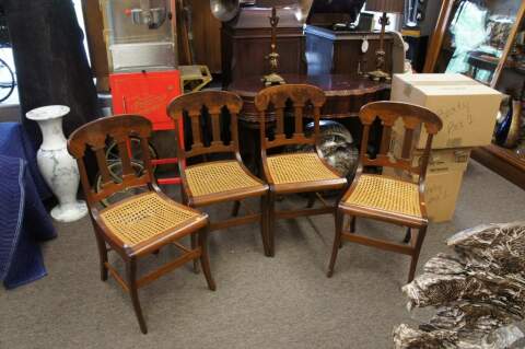Set Of 4 Wooden Vintage Antique Wicker Seat Dining Chairs 16..5" x 19" x 33