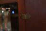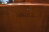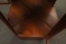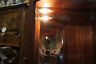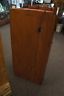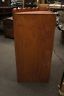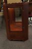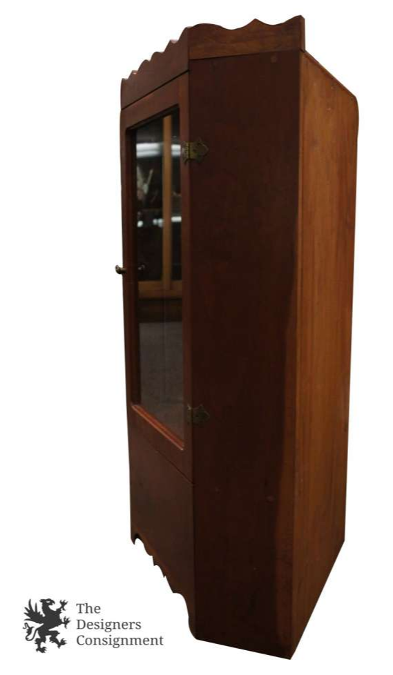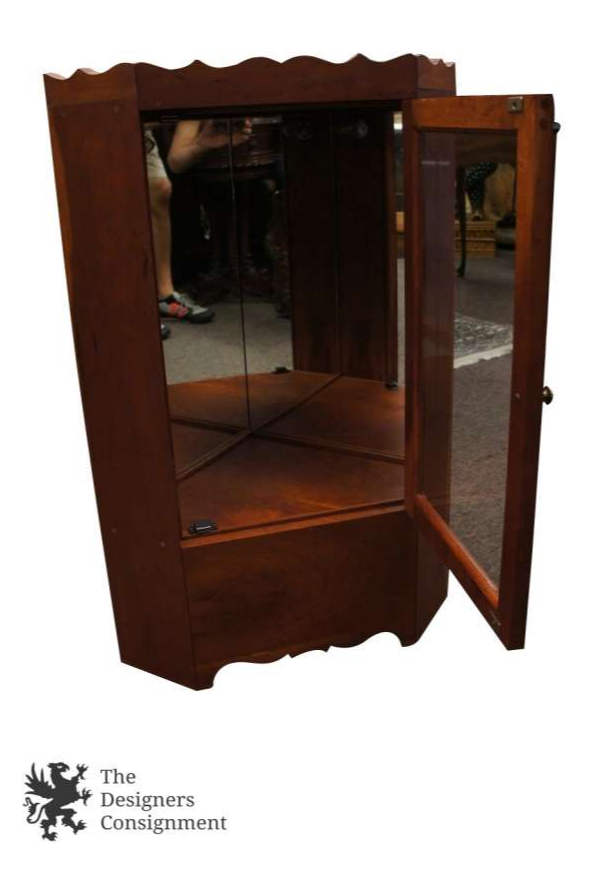 This unique corner cabinet was handcrafted by Clarence Lindamood. Signed on the back. Features a glass front door, mirrored backing and illumination for displaying collectibles. Made from Cherry. A fine addition to any home!
