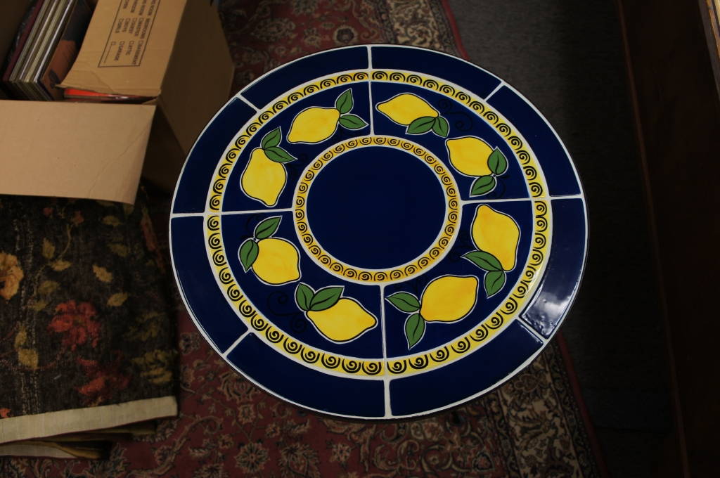 Lovely Lemon Tiled Outdoor Iron Patio Table Deck or Screened in Porch Furniture