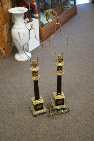 Pair Of 2 Rare Black & White Marble Base Brass Table Lamps 5.5" x 36.75