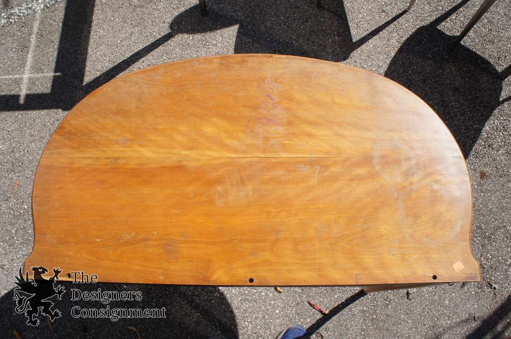 Beautiful Demilune Maple Accent Table. Made from Maple with a stunning wood-grain. Features cabriole legs and brass drawer pulls