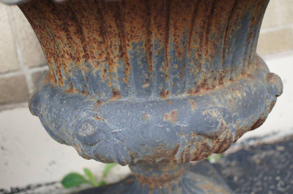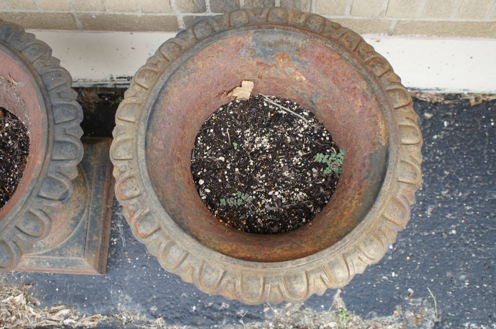 Pair Of 2 Antique Cast Iron Planters Urns Garden Flower Jardiniere Pot 19