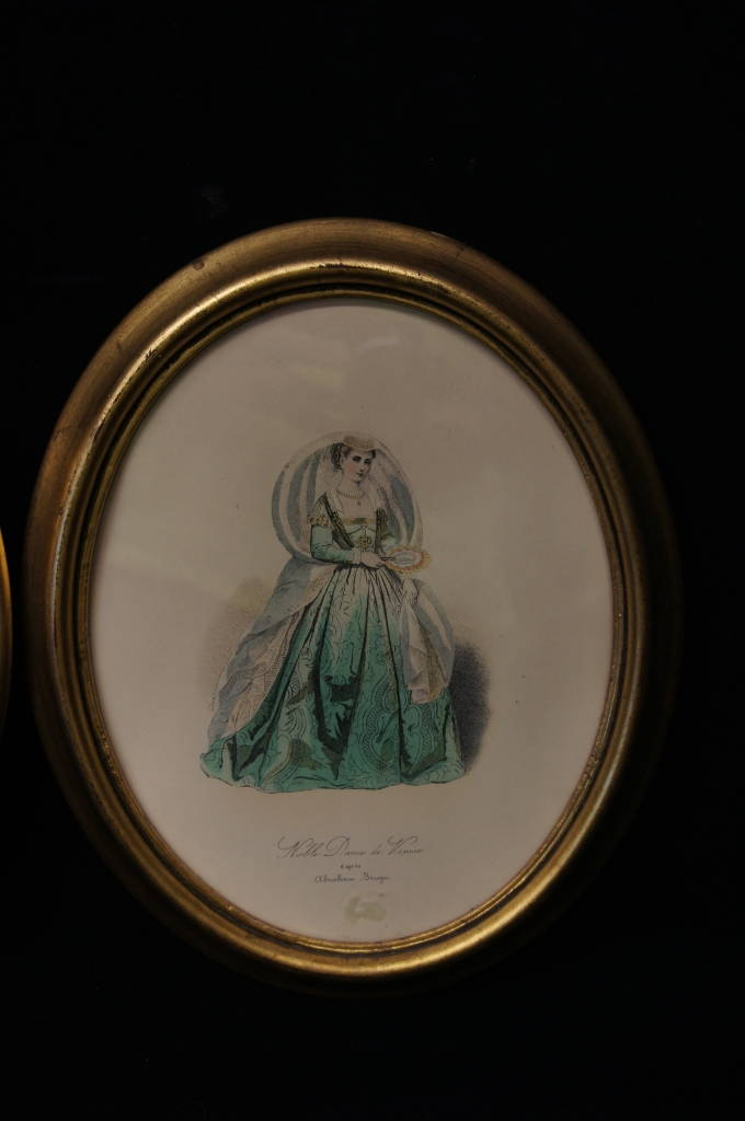 Pair Of 2 Round Oval Etchings Artist Pauquet "Costumes" w/ Frames