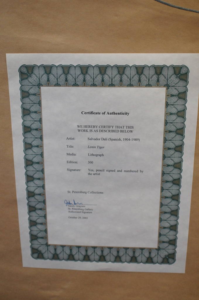 Signed Salvador Dali "Lenin Tiger" Lithograph Print Edition #300 w/ Frame COA