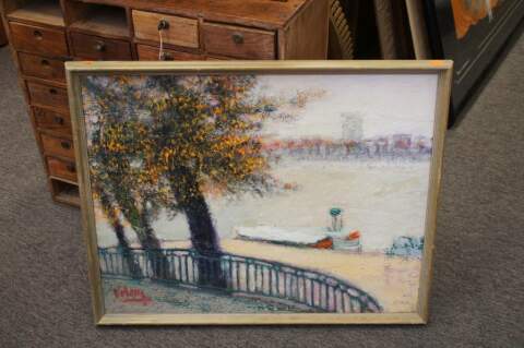 Rare Original Signed Volang Oil On Canvas Painting "Quai de la Seine" w/ Frame