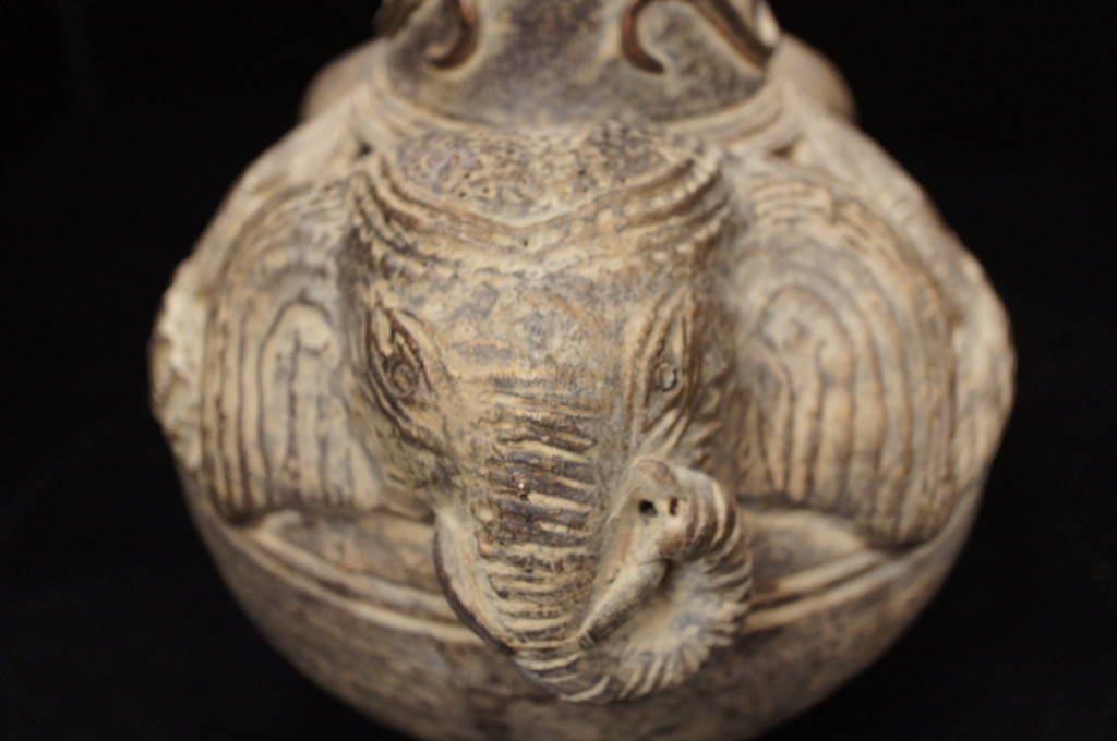 Unique Ceramic 13" Decorative Elephant Vase Intricately Detailed Pottery Ships