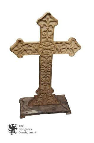 This is a great antique religious piece. It is a solid cast iron cross that is designed with Fleur de Lis and it is in a budded body style. The piece was painted somewhat recently This piece has a great look and style to it and it would make a wonderful addition to your home or collection.