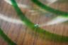Here is a sweet little cake, candy or treat stand. It features hand blown glass with a green swirl!