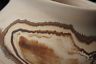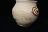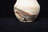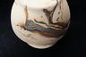 This is a gorgeous piece from the Minnesota company, Nemadji Pottery. It is a clay pot decorated with lovely swirling marbleized colors of Orange, Blue, and Brown. These pots are painted by dipping them into vats of water and paint making every piece of Nemadji pottery completely unique. This is a beautiful piece and it would make a wonderful addition to your home or collection.