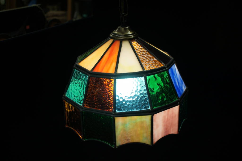 Multicolored Arts & Crafts Hanging Slag Glass Shade Light Fixture TAKING BACK 4-26-16