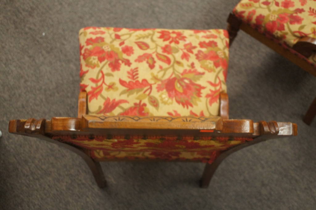 Features a red floral upholstery pattern. Victorian era, Eastlake style