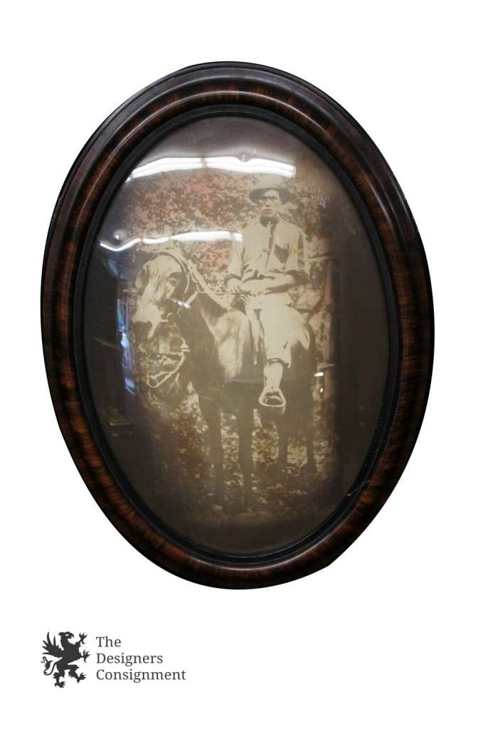 This is a beautiful domed glass frame with a photo. It has a lovely mahogany frame and a hand colored photograph of a man from the civil war. This is an absolutely gorgeous piece and it would make a wonderful addition to you home or collection.