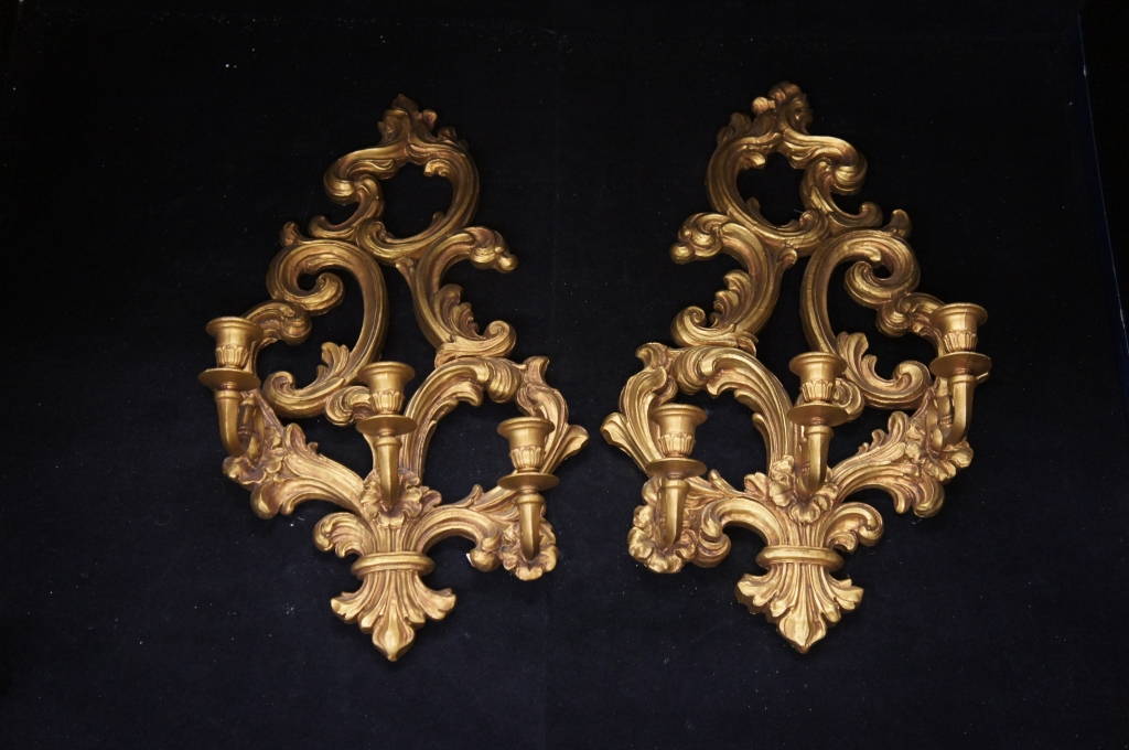 Pair Of 2 Stunning Gold Gilt Resin Home Decor Wall Sconces Candlestick Holders