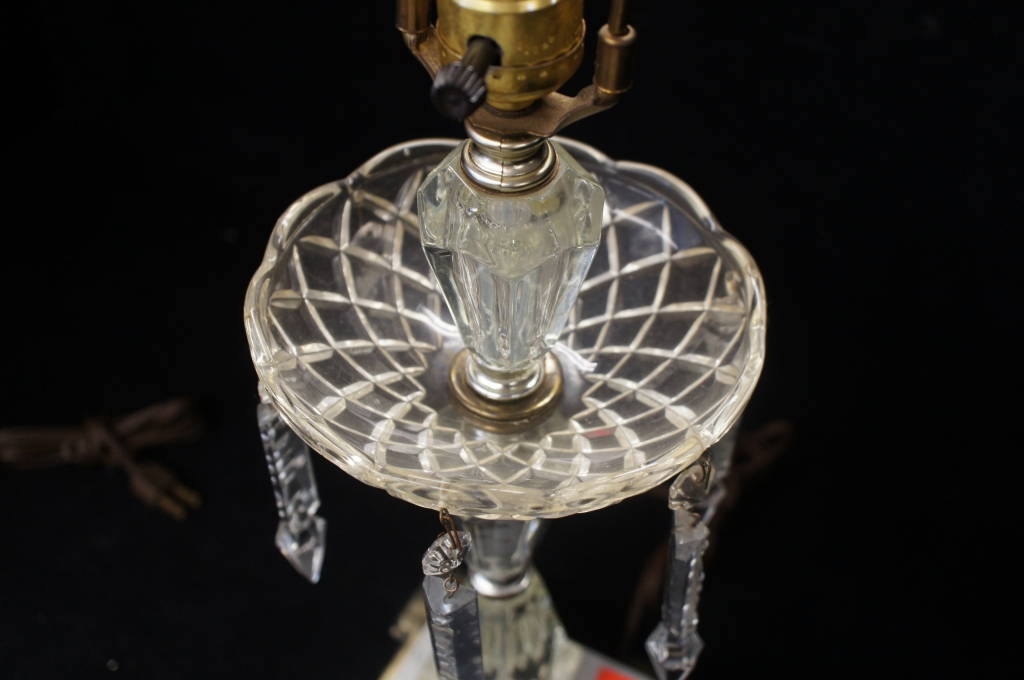 Pair Of 2 Stunning Crystal Glass Pendants White Marble Brass Base Table Lamp