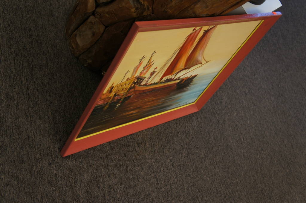 Beautiful 1965 Signed Oil Seascape Sunset Sailboat Docking Ocean Nautical Framed