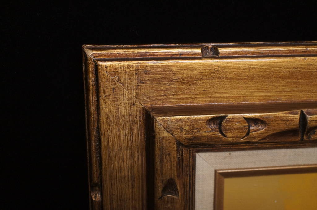 Vintage Oil Painting Boats in the Harbor in Winter Gold Painted Frame De Marco