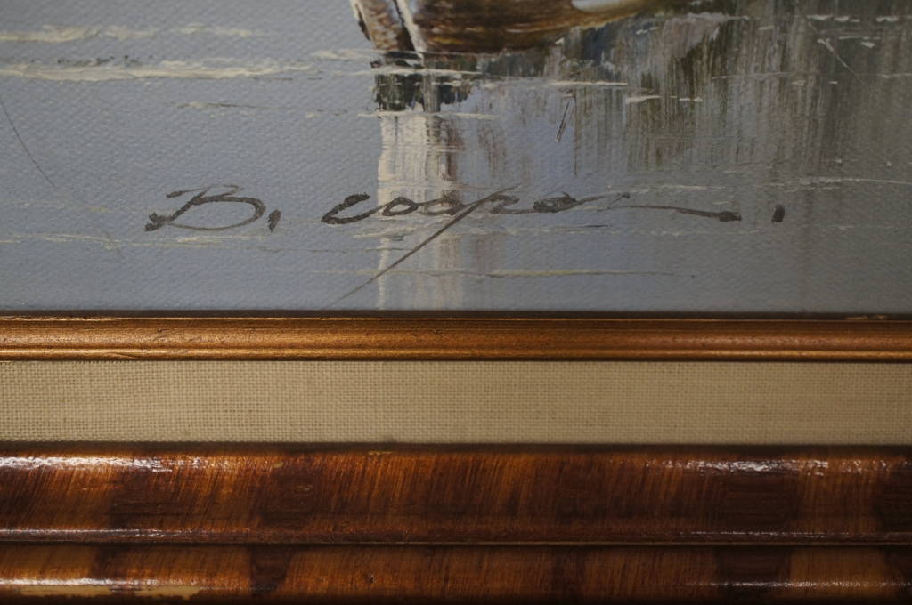 Vintage Oil Painting Northeast Harbor in Winter Gold Painted Frame B. Cooper