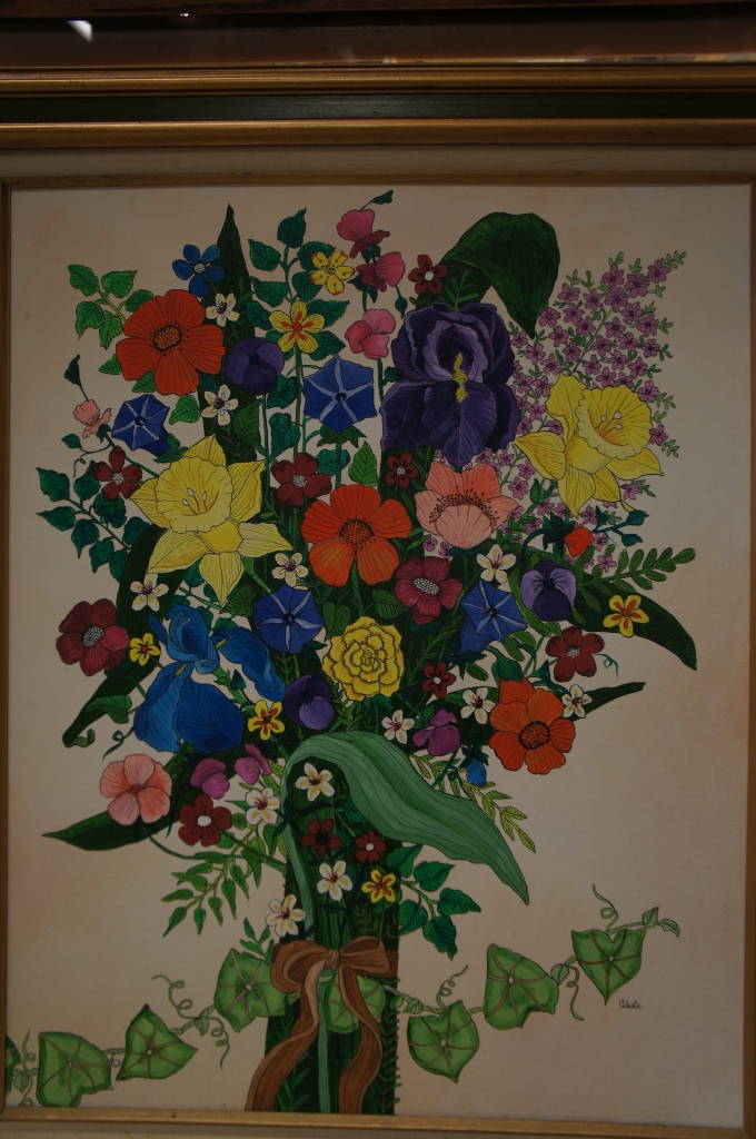 Mid Century Floral Bouquet Vase Signed Painting Celeste Daisy Tulip Rose Flowers