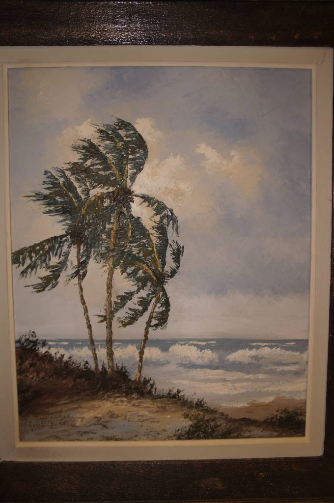 Windy Beach Seascape Oil Painting Canvas By Scheirenberger Palm Trees Ocean