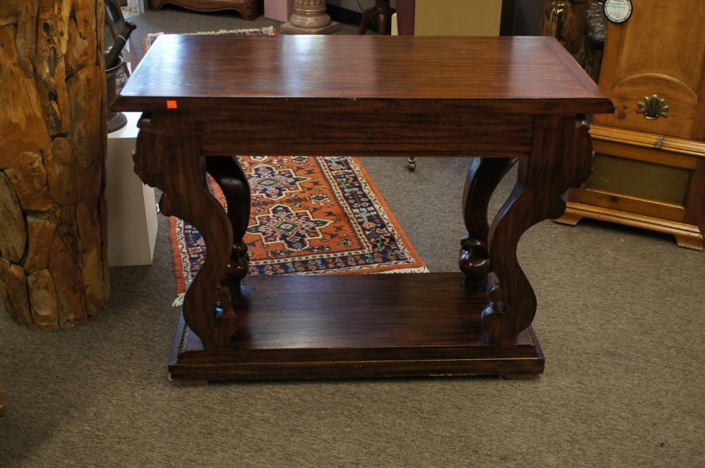 Antique Louis XV Style Carved Mahogany Console Table Figural Lion Sideboard