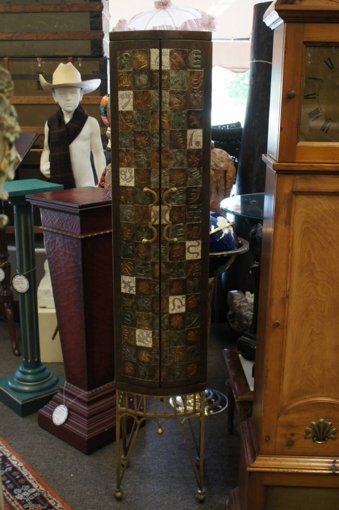 Tall Asian Oriental Tribal Symbol Storage CD Video Accessories Cabinet Chest