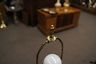 Here are two lovely mid century lamps. Feature intricate high relief white flowers towards the base. The base has the appearance of faux marble. The rest of the lamp is gold.