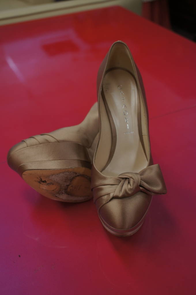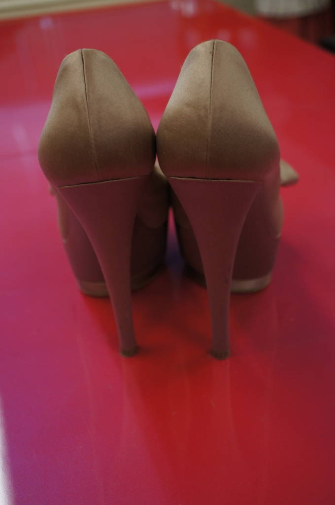 Casadei Womens Satin Metallic Champaigne Platform Cone Heels Stiletto Italy Sz 7