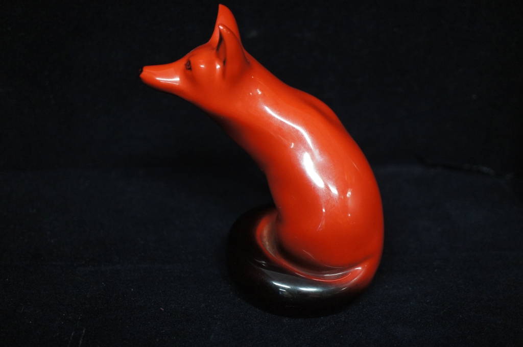 Antique Royal Doulton Flambe Porcelain Seated Fox Figurine Made In England Red