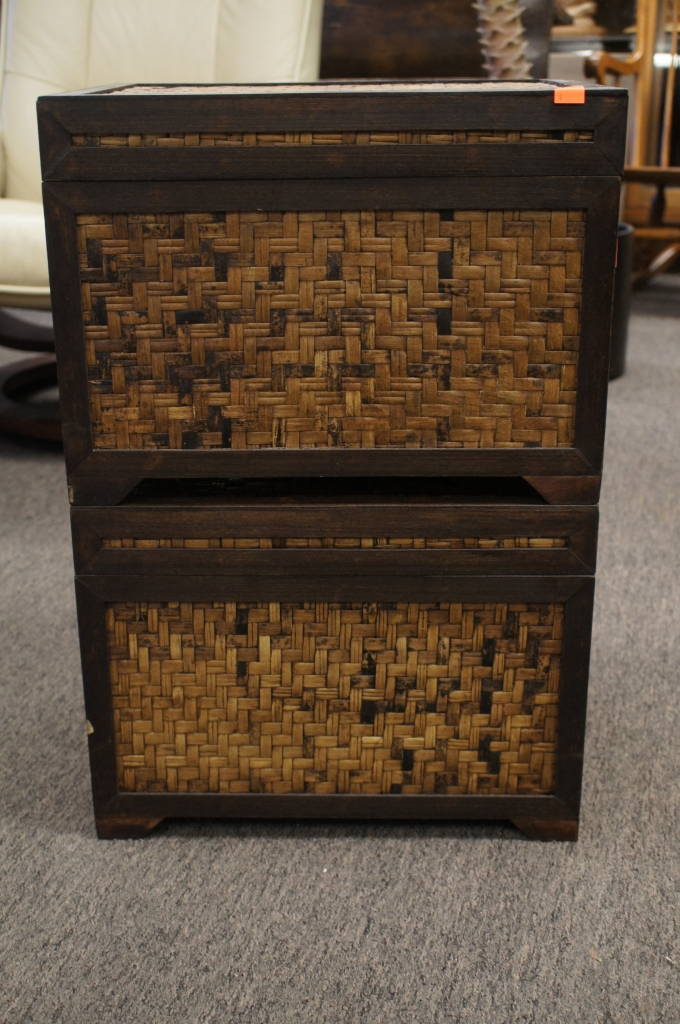Pair Of 2 Very Nice Decorative Wooden Wicker Rattan Storage Accent Trunk Boxes