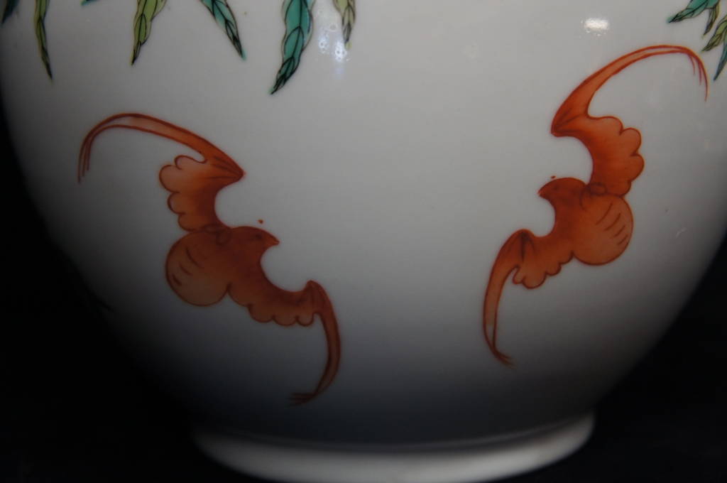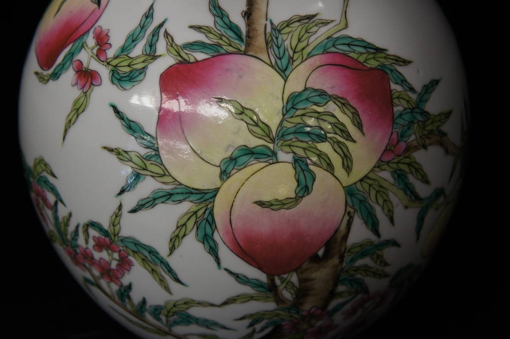 Large Chinese Peach Longevity Globular Porcelain Vase Bats Blossoms Flowers Tree