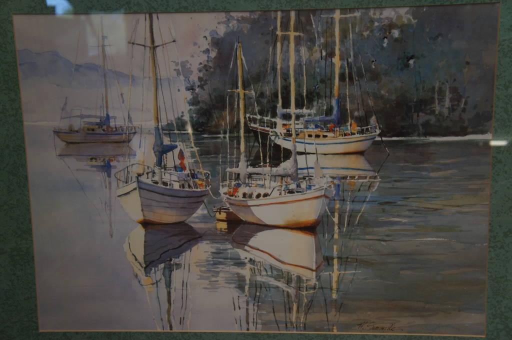 Marilyn Simandle Signed Watercolor Framed Art Prints Sailboats Harbor Bay Ocean