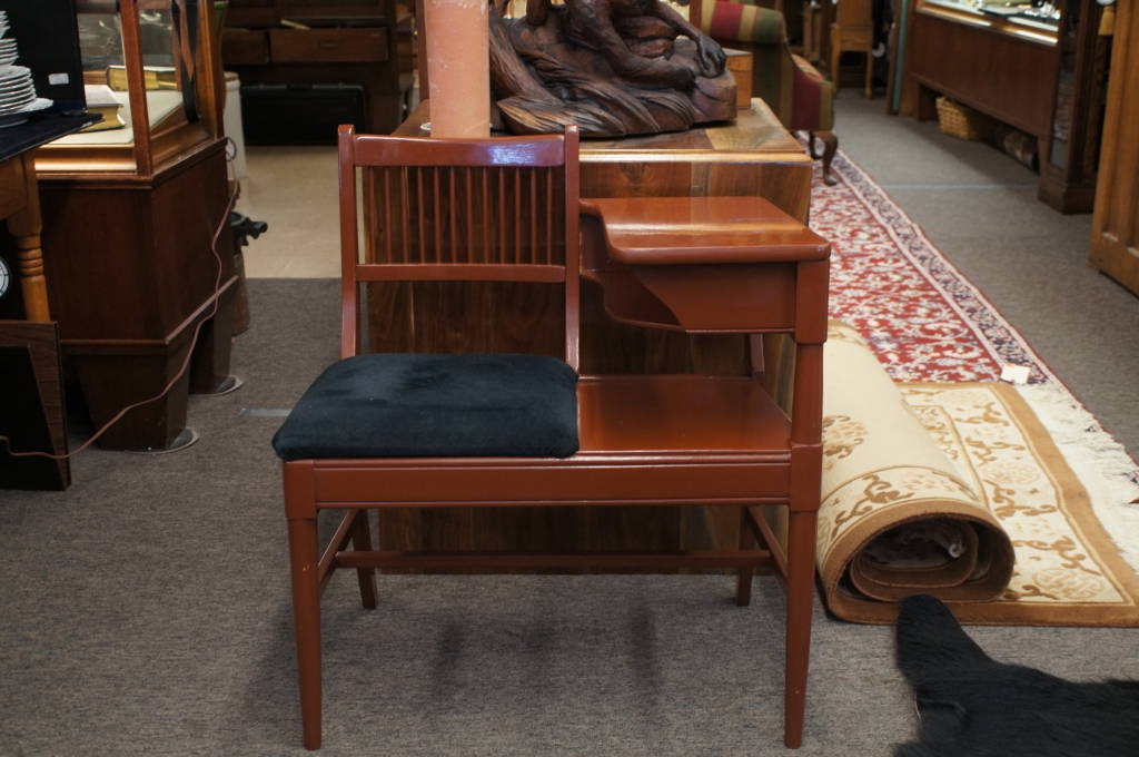 Vintage Handpainted Wood Telephone Booth Table Gossip Bench Chair Seat Desk