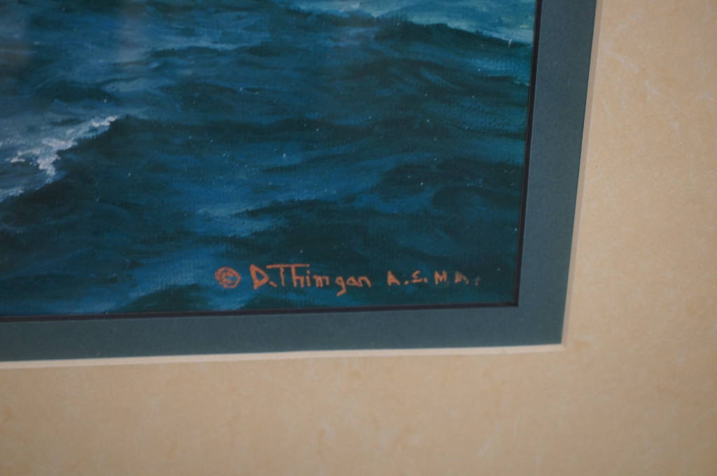 Signed "Star Of France" Boat Ship Painting On Canvas By David Thimgan w/ Frame