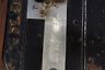 This is a gorgeous sewing machine cabinet. It is a small tiger oak cabinet with a dropleaf top and a treadle on the inside the cabinet. This piece is decorated with hand painted bird decorations and it includes an attachment case and directions. This is an absolutely beautiful piece and it would make a wonderful addition to your home or collection.