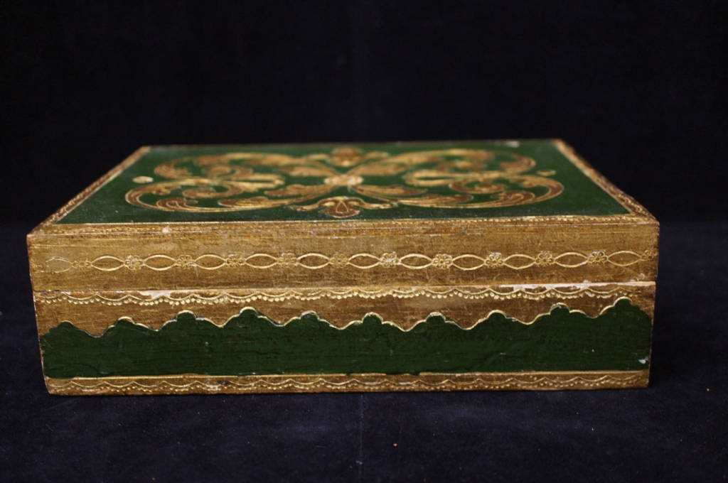 Vintage Florentine Wood Box Franco Tacchi Trinket Box Green Gold Italy Venetian