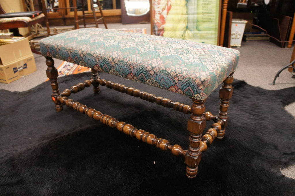 Vintage Jacobean Style Window Piano Bench Foot Stool Ottoman Turned Legs