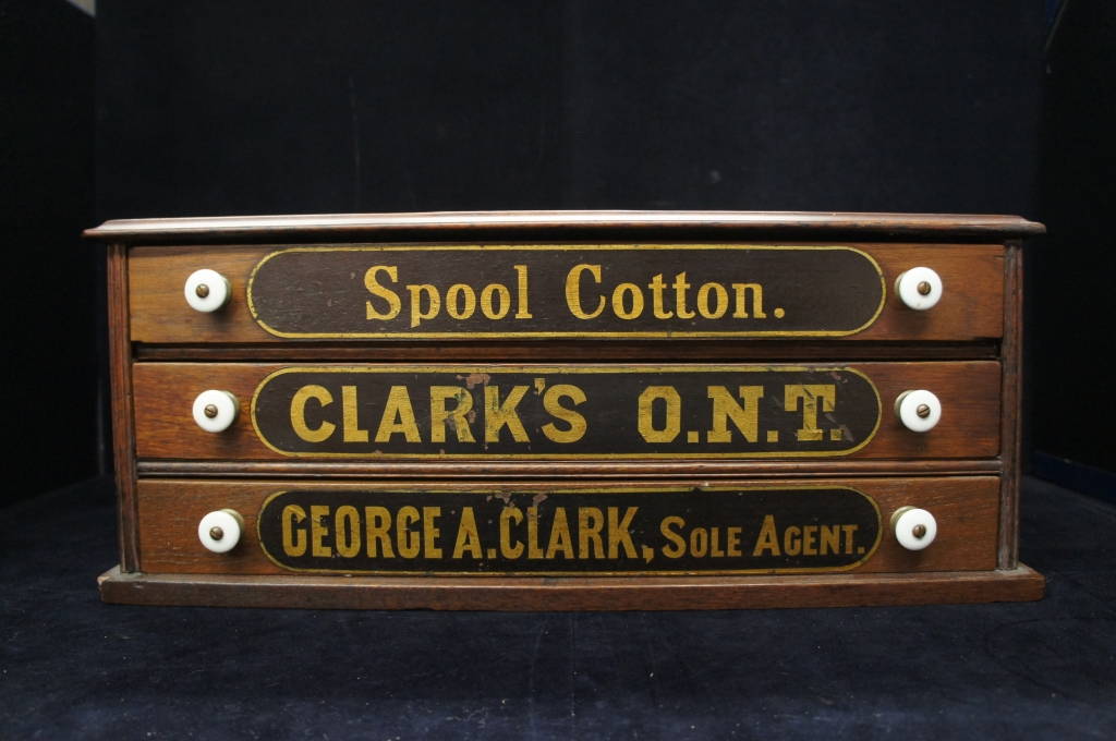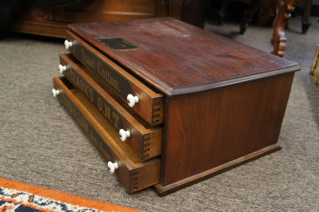 Antique Clarks ONT Oak Spool Cabinet Victorian Country Store Display Chest Sew