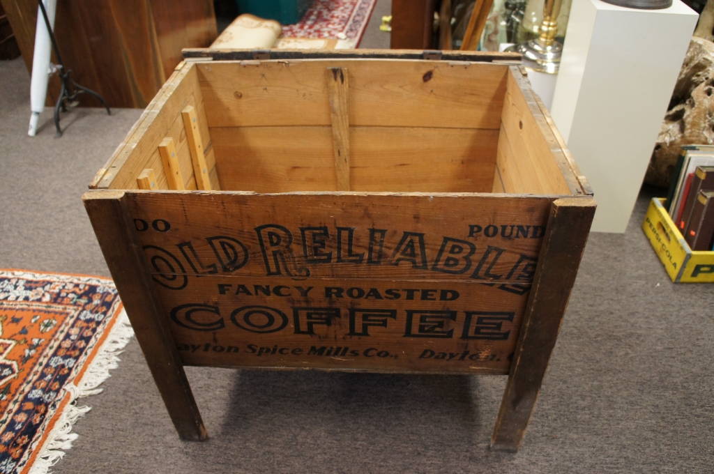 Old Reliable Antique Coffee General Store Bin Dayton Ohio Primitive Trunk Crate