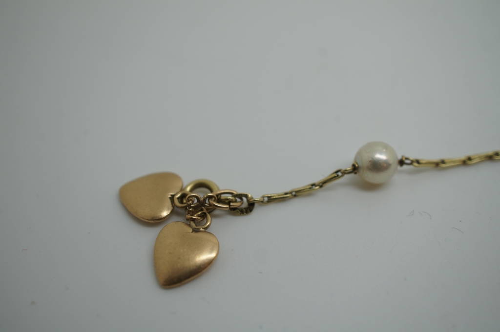 Vintage 14k Gold Pearl Ladies Bracelet Hearts Charm Sexy Anklet 6.2 Grams