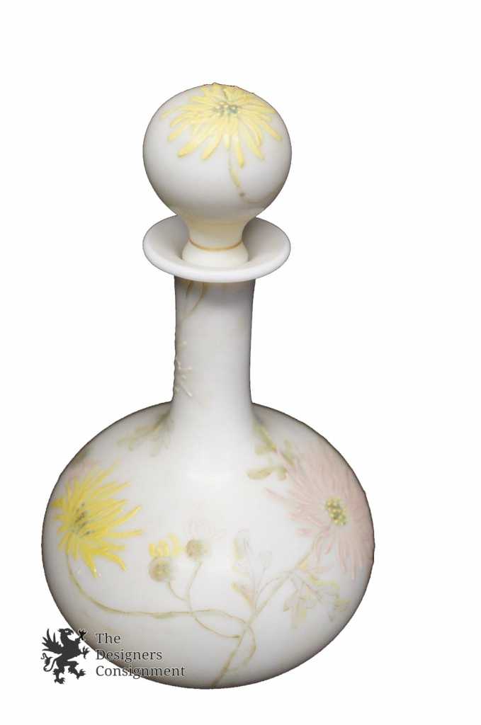 Here is a very cool milk glass decanter. It has hand painted floral designs and displays very well.