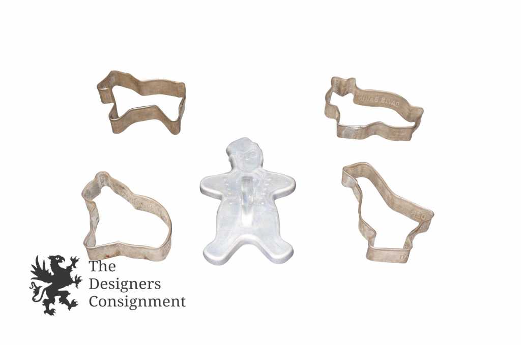 This is an awesome lot of cookie cutters. 4 of them are Davis Baking Powder cookie cutters, they are a Bunny Rabbit, a Cat, a Horse, a Duck and one is a Gingerbread man. These are great pieces and they would make wonderful additions to your home or collection.