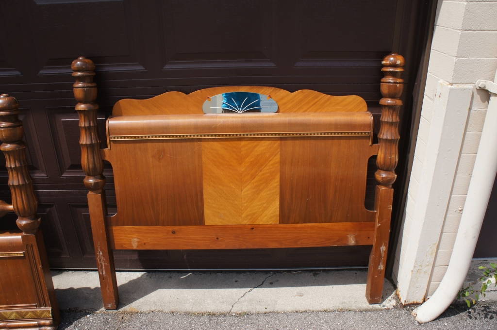 Art Deco Antique Waterfall Bed Full Size W/ Mirror & Bakelite Accents Double