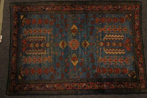 Vintage Red Blue Hand Knotted Area Rug Matt Caucasian Medallion Armenian