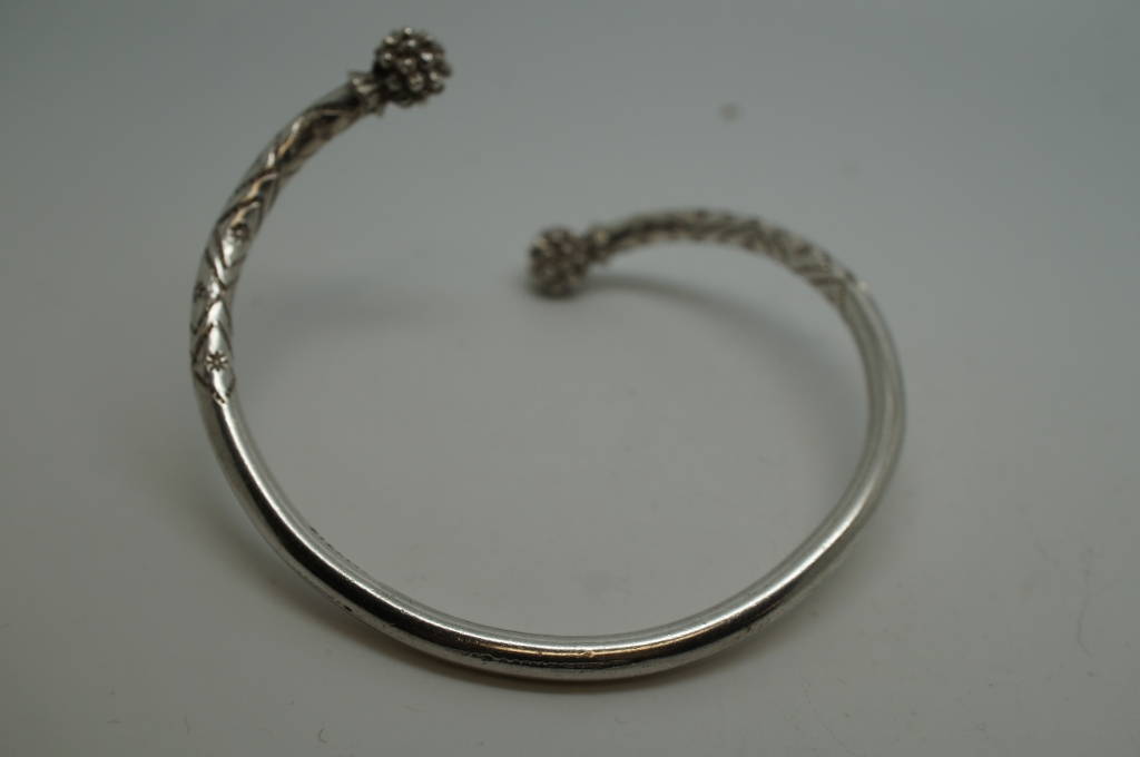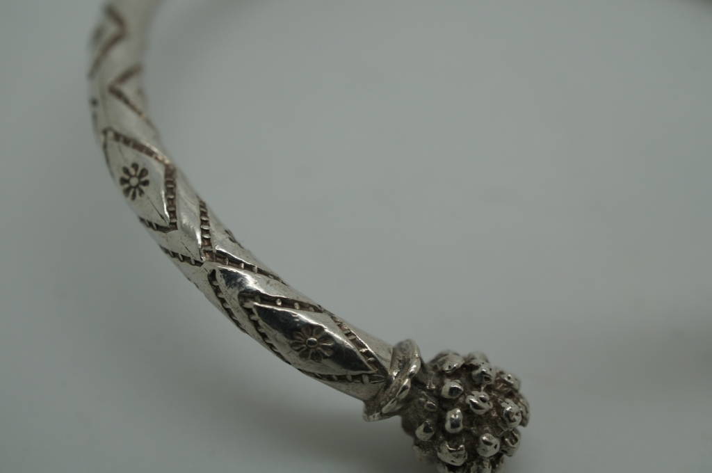 Vintage Sterling Silver Jamaican Coil Cuff Bracelet Engraved Jewelry Unique