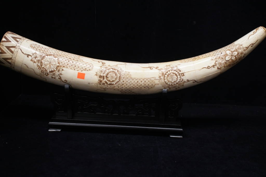 Asian Oriental Handcarved Etch Camel Bone Scrimshaw Dragon Flower Medallion Horn