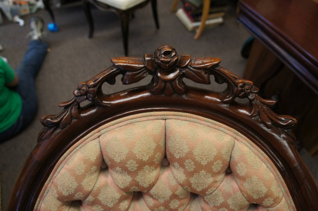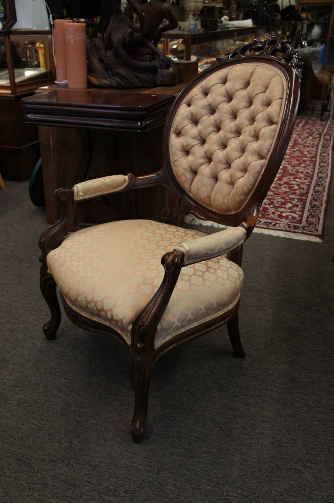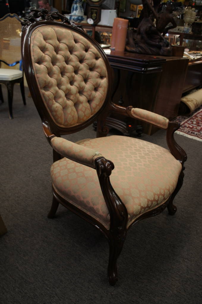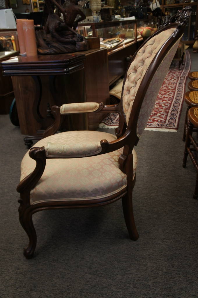 Vintage Louis XV Style French Oval Back Tufted Arm Occasional Chair Rococo Salon