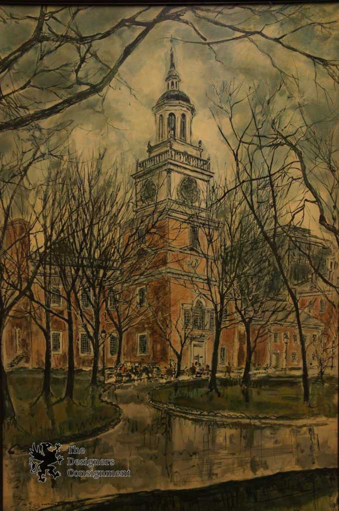 Here is a finely crafted art print. Features a school building or library in colonial style. A great piece for any home