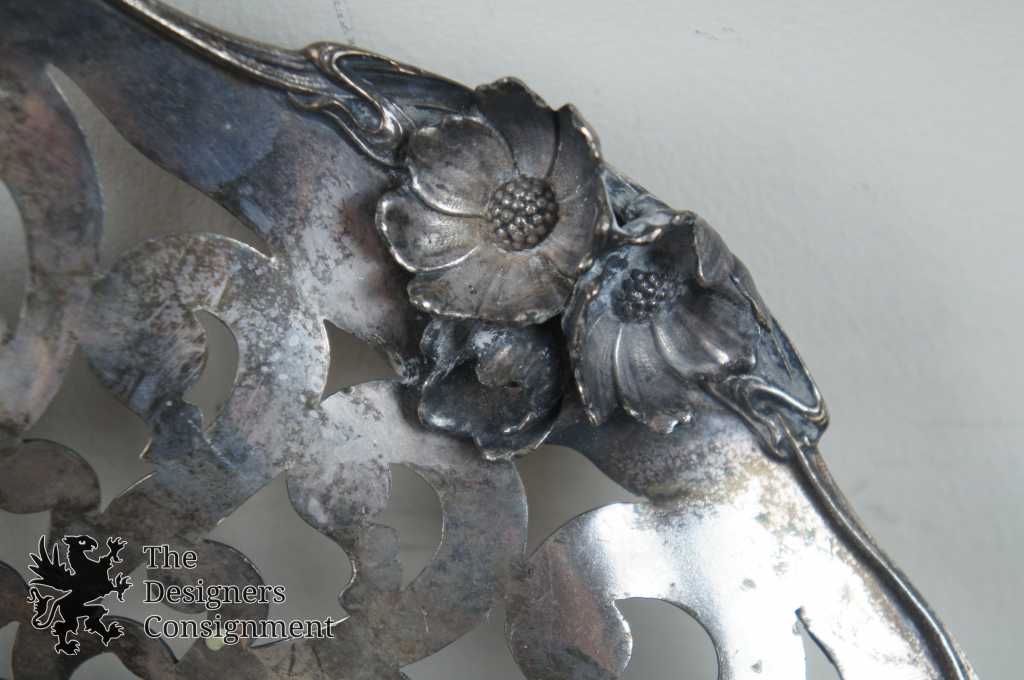 This is a gorgeous piece from the American company, Homan Silverplate Company of Cincinnati, Ohio. It is a silver plated bride basket with a handle that is decorated with floral motifs. The model number on the base is "2528". This is an absolutely beautiful piece and it would make a wonderful addition to your home or collection.